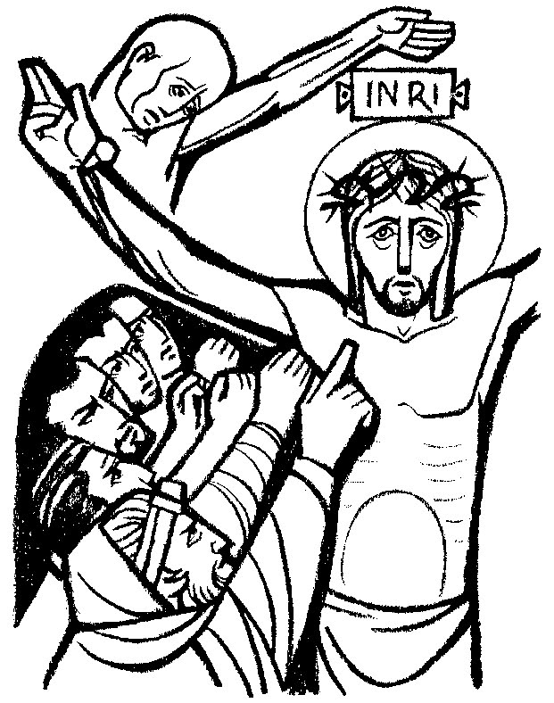 * A cruz é o Trono, em que se manifesta plenamente a realeza de Jesus, que é perdão e vida plena para todos.