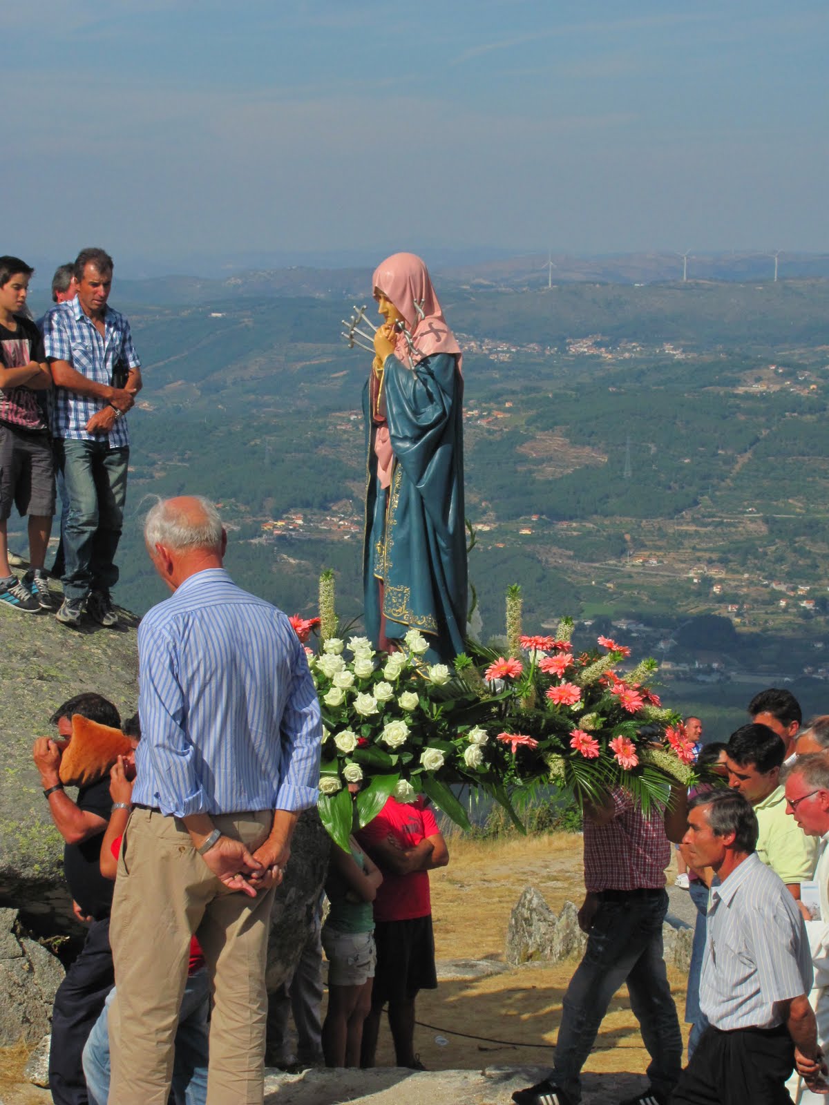 O tempo não ajudou durante os dias da novena. Frio e vento. Mas no dia da festa, fez-se sentir um tempo agradável, morno, sereno. Muita gente demandou a Serra, onde actualmente o espaço religioso está claramente demarcado do lugar da feira, graças ao empenho das sucessivas comissões. A Montanha encheu-se então de cor, movimento e agitação. A calma pacífica e serena foi aliada deste dez de Julho.