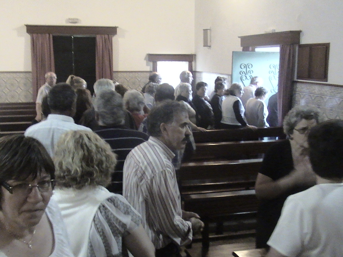 Muita gente, capela a transbordar, apesar do frio. Muitos mais teriam gostado de ficar, mas o frio intimidou-os a voltar para dentro do carro e zarpar.